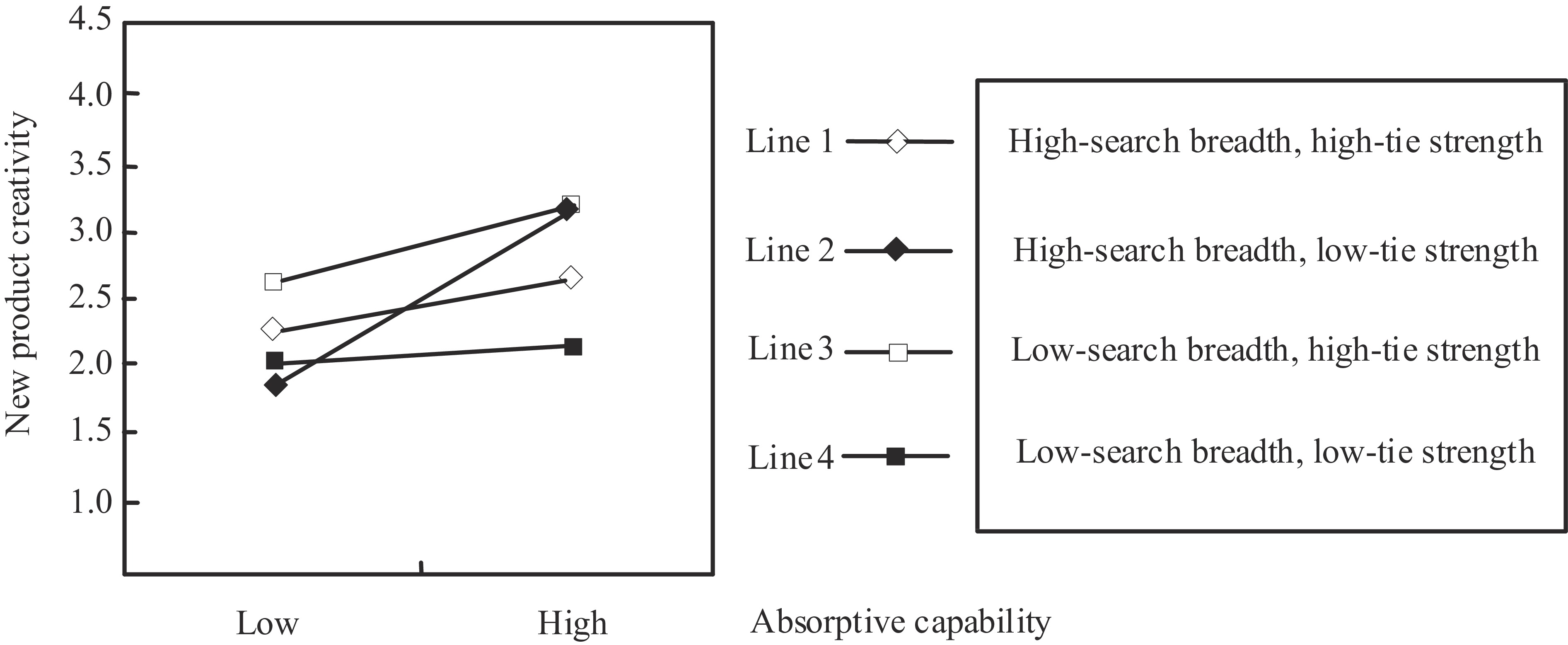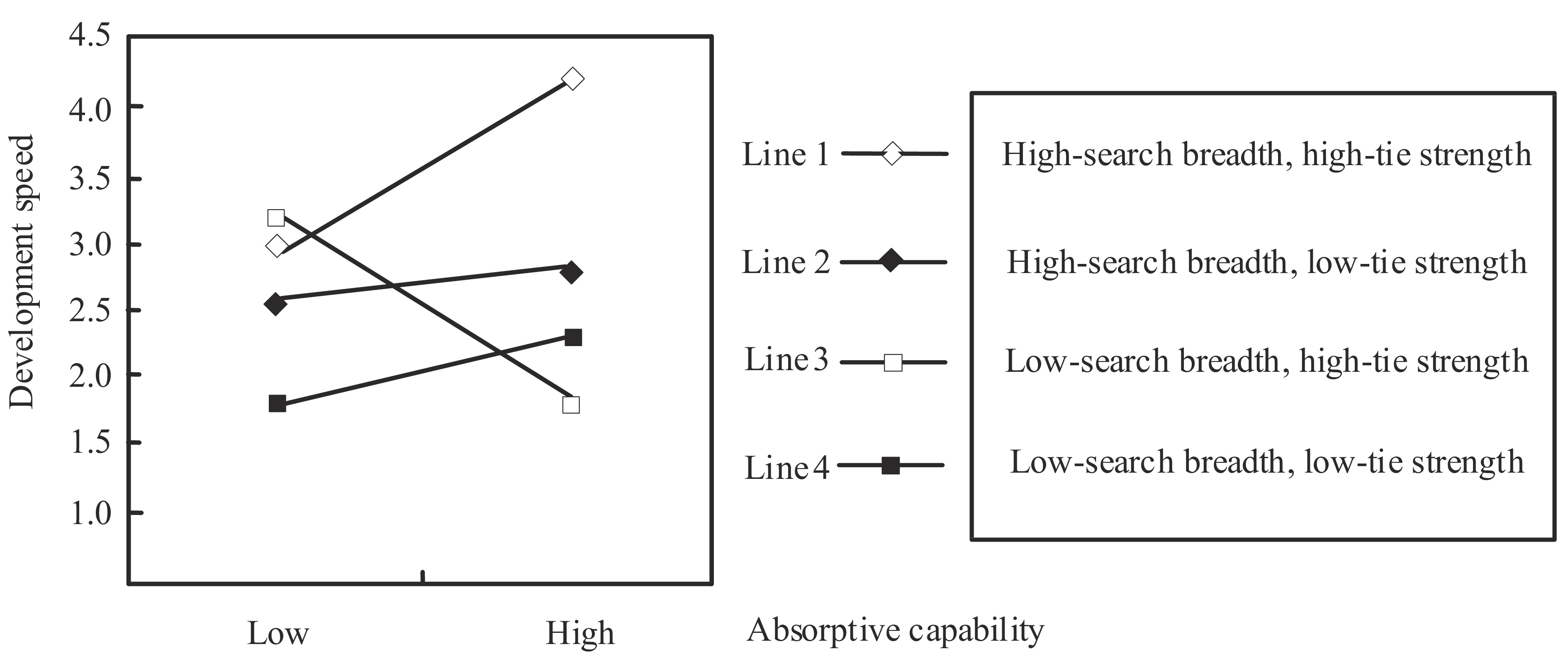 This study examines the influences of external search breadth and depth on new product development performance from a knowledge-based view. In particular, we introduce tie strength and absorptive capacity as two contextual variables in this study. The findings from data on 281 Chinese firms indicate that search breadth facilitates new product creativity, whereas search depth facilitates development speed. Tie strength weakens the relationships between search breadth and new product creativity but strengthens the relationship between search depth and development speed. Furthermore, the synergistic effect of tie strength and absorptive capacity negatively moderates the relationship between search breadth and new product creativity but positively moderates the relationship between search depth and development speed.