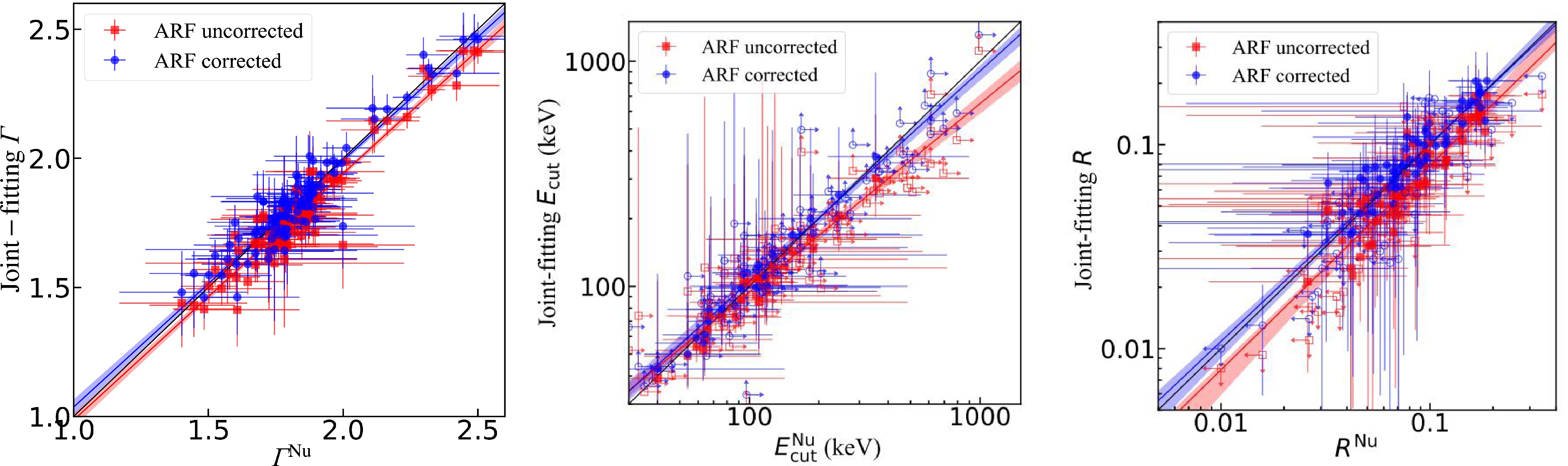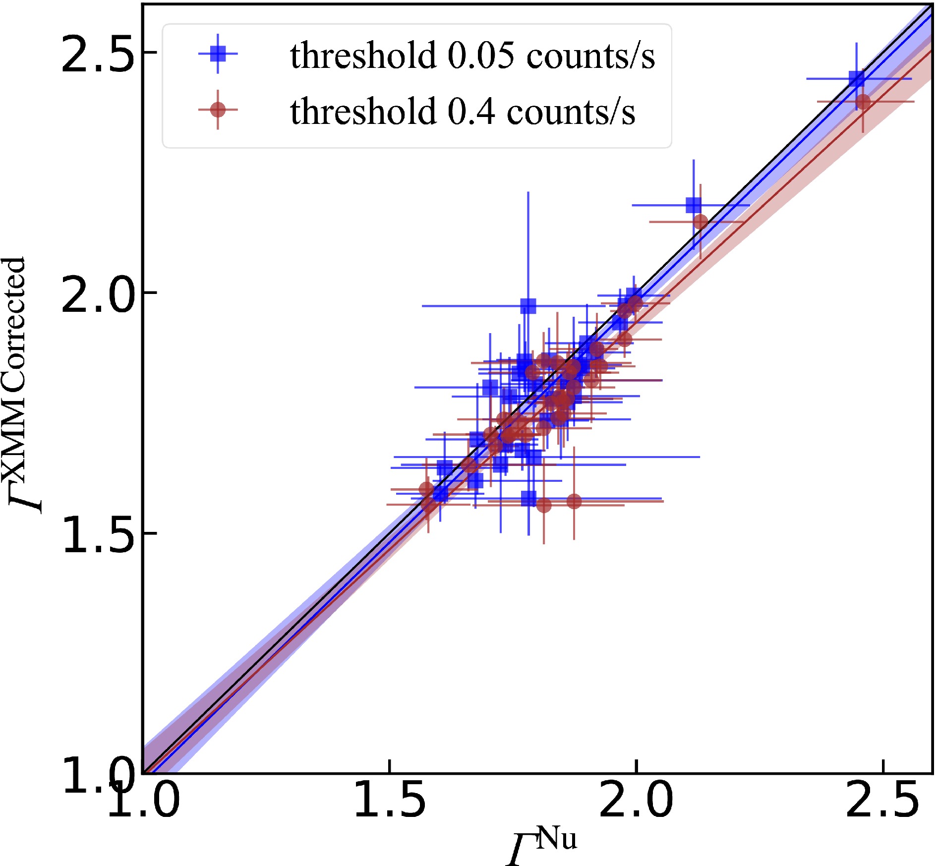 XMM-NuSTAR spectra and verify the effectiveness of the correction, in this work, we perform joint-fitting of the