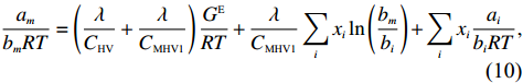 CO2+HFC binary mixtures have good performance and environmental friendliness and are considered good alternative working fluids in cooling and power cycle systems. The vapor-liquid phase equilibrium properties are key to the calculation of the enthalpy and entropy of mixtures, which is critical for the analysis of cooling and power cycle systems. To accurately predict the vapor-liquid equilibrium of CO2 and HFC (R23, R32, R41, R125, R134a, R143a, R152a, R161, and R227ea) binary mixtures, a group contribution model based on the excess free energy (GE) mixing rules (PR+MHV1+UNIFAC and PR+LCVM+UNIFAC) is established in this paper. The interaction parameters between groups such as -CO2, -Alkane, -CHF, and -CHF3 are obtained by the vapor-liquid phase equilibrium experiment of CO2 and HFC refrigerants, and these group parameters are critical for predicting their vapor-liquid phase equilibrium properties (the pressures and vapor phase molar fractions). The AARDp value calculated by the PR+LCVM+UNIFAC model is 5.53%, the value of AADy1 is 0.0132, and the AARDp and AADy1 values of the PR+MHV1+UNIFAC model are 7.40% and 0.0229, respectively. However, for the CO2+R32 system, the PR+MHV+UNIFAC prediction model can reproduce the experimental data with lower deviations, and the values of AARDp and AADy1 are 1.53% and 0.0045, respectively. In summary, for CO2+HFC binary mixtures, the PR+LCVM+UNIFAC group contribution model can reproduce the experimental data with lower deviations, but for individual CO2 binary mixtures (such as CO2+R32), the PR+MHV1+UNIFAC model also has unique advantages. According to the prediction results of the group contribution model, the PR+LCVM+UNIFAC model has significantly improved the calculation progress compared with the PR+MHV1+UNIFAC model used in the previous system.